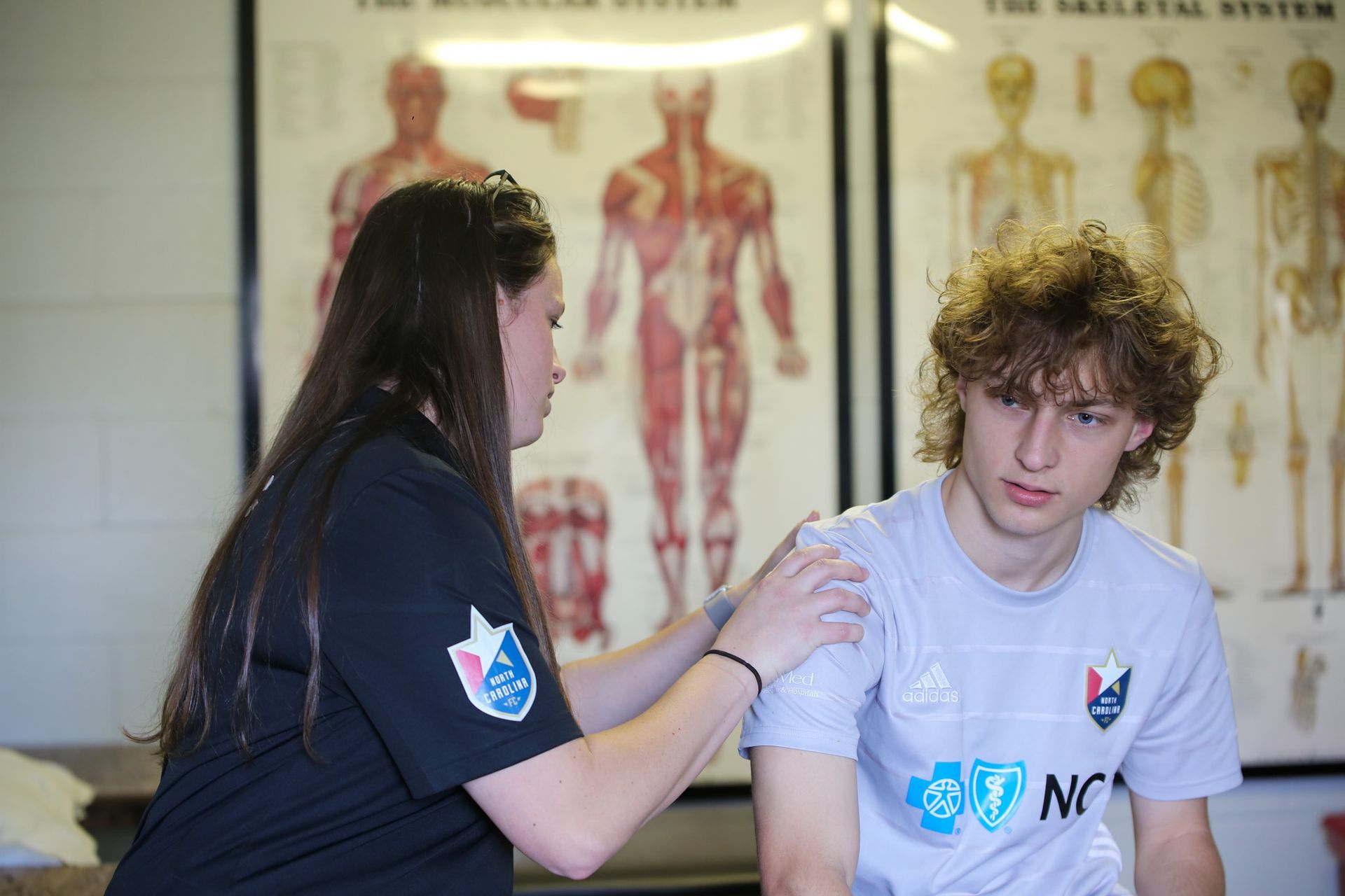 Our Athletic Training services (AT) are available to all NCFC players as part of all Club fees. AT includes, but is not limited to, injury evaluation, taping, stretching, icing, and soccer specific rehabilitation for any injury. Our Head Athletic Trainer, Jason Bailey, is certified in Athletic Training, Strength and Conditioning, Performance Enhancement, and Corrective Exercise, and he is supported by certified Athletic Trainers from Wake Orthopaedics. The training room is conveniently located at WRAL Soccer Park, and it is generally open during training sessions on the weekdays and mornings/afternoons on game weekends. Thanks to our partnerships with Wake Orthopaedics, ATCs also provide coverage during the season on designated nights at Thomas Brooks Park, Wake Competition Center, Middle Creek, and on tournament weekends.