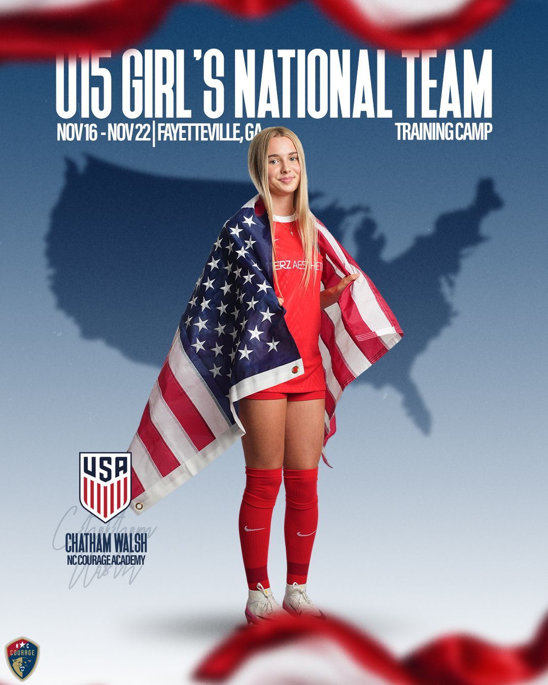 The NC Courage Academy Program has a strong history of developing and producing Youth National team players. Player production at this level is one of the primary goals for our Academy program.